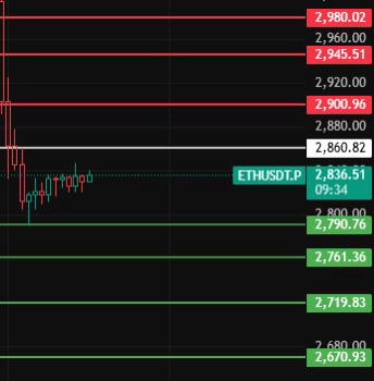 Ethereum pay attention to the position 2860 today. Only if it stays above this position for 1-2 hours can it start to rebound. Continue to pay attention to the resistance levels nearby 2900-2945-2980!