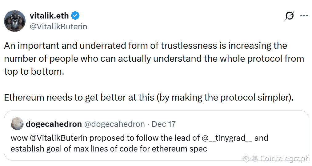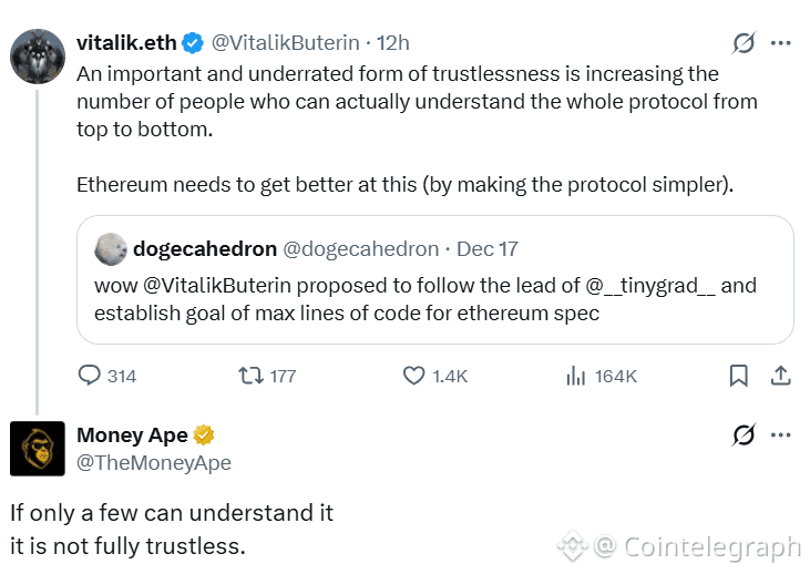 “An important and underrated form of trustlessness is increasing the number of people who can actually understand the whole protocol from top to bottom. Ethereum needs to get better at this by making the protocol simpler.”