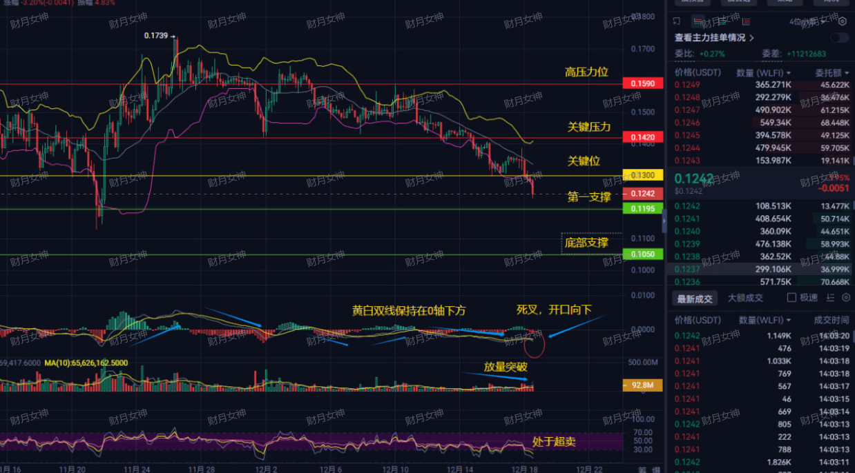 Now the price of WLFI is pinned at 0.1242, having directly dropped by 3.2%. Let's analyze the key signals: