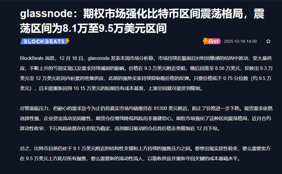 So now the pattern is very clear, the range of the fluctuation box is from 81,000 to 95,000, and the options market has stamped this range with real money positions. The near-month volatility has narrowed, which means big funds also believe that it cannot jump out in the short term, so simply lying flat and making some waves is the way to go. Spot demand is weak, and institutions are also playing high sell low buy, don't expect any 'white knight' to charge in with huge funds for a V-reversal, that's unrealistic.