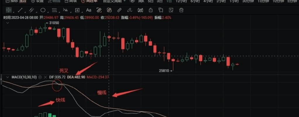 Consisting of two curves and a set of bars, the fast-moving one is the DIF line, and the slow one is the DEA, which can also be abbreviated to fast F and slow A;