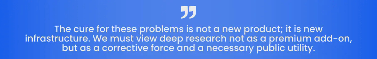 True research acts as infrastructure because it provides the “preventative diagnosis” that “breaking news” cannot. It replaces the ephemeral nature of the news cycle with data-anchored frameworks that allow for long-term decision-making.