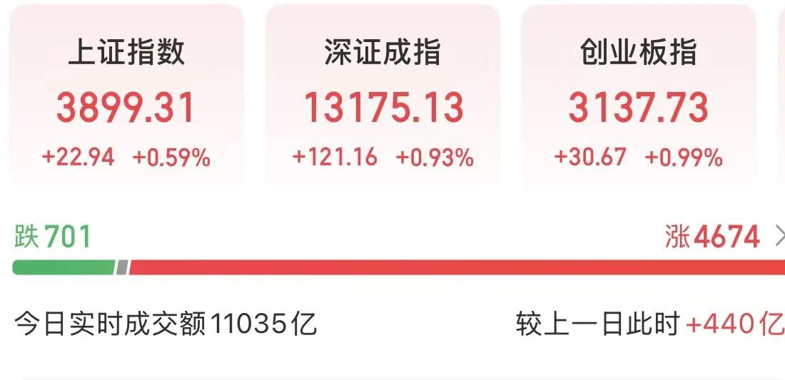 On December 19, the A-share market strengthened in the morning, with the Shanghai Composite Index opening high and rising, and the ChiNext Index once increasing by more than 1.5%. As of the midday closing, the Shanghai Composite Index rose by 0.59%, the Shenzhen Component Index rose by 0.93%, and the ChiNext Index rose by 0.99%. The total market turnover in half a day was 1.1 trillion, an increase of 44 billion compared to the previous trading day, with nearly 4,700 stocks rising.#热门话题