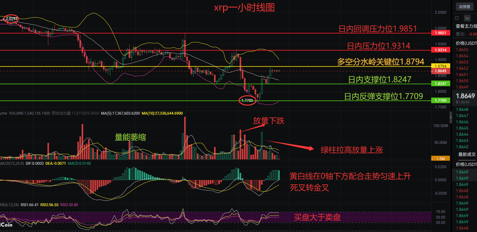 In the short term, the focus is still on shorting on rallies! If it reaches around 1.9314, you can try shorting with a small position, targeting the 1.8794-1.8247 range to capture a wave of pullback profits. If it breaks below 1.8247, then keep a close eye on 1.7709, which is the phase bottom suitable for ambushing a rebound!