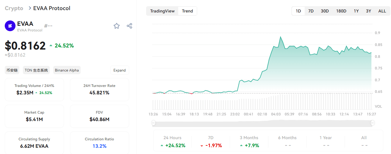 With a market cap of only $5.41M and a circulating supply of only 13.2%, it's pitifully small. Such coins are easy to pump and even easier to dump. Today's volume has already been a bit 'too forceful', can the follow-up funds keep up? I put a big question mark on that.