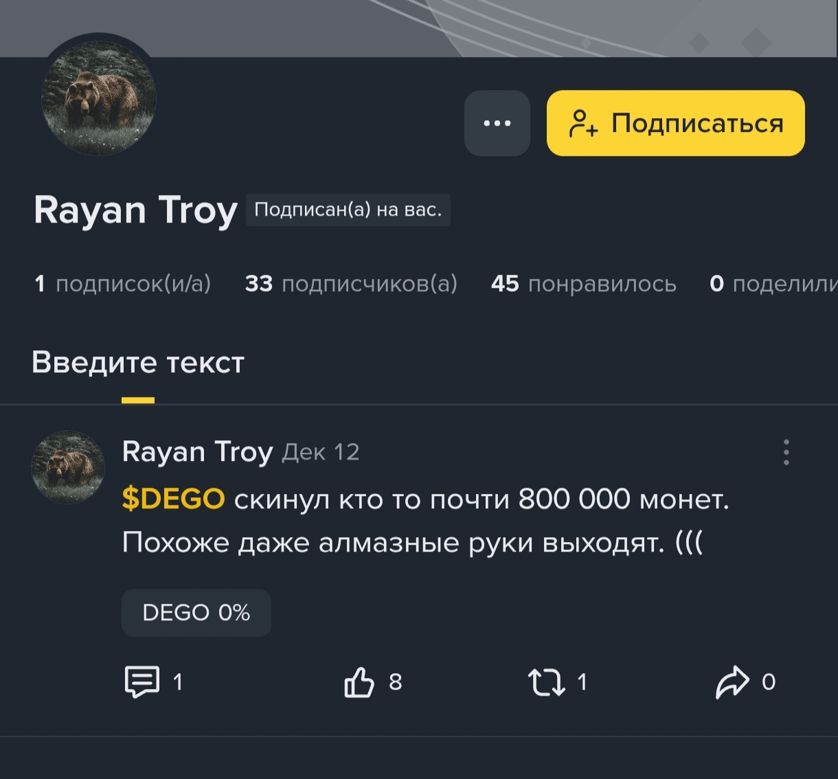 And while $DEGO was bouncing off the bottom, your own cryptocurrency — attention — reached a new ATH. You realized that you were not building an audience, but a milestone. And the five-hundredth subscriber became that uncelebrated validator who confirmed your block in the most important chain — the chain of human trust.