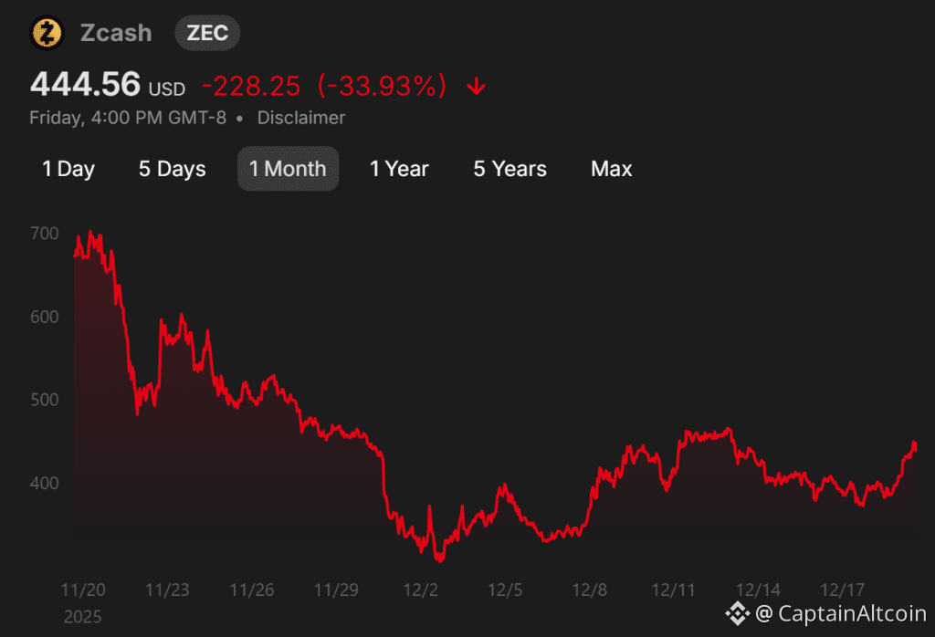 Price action in mid-December reflected that uncertainty. ZEC traded in a choppy range around the high $300s to mid $400s, with rallies fading quickly. Sensitivity to macro risk and regulatory tone remains high, which keeps traders focused on finding confirmation signals.