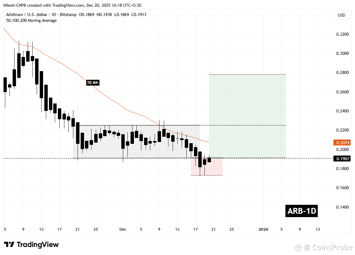 However, this setup remains conditional. As long as ARB continues to trade below the $0.2074 resistance, downside risks cannot be ruled out, and the market remains vulnerable to further volatility. Holding recent lows and reclaiming key resistance levels will be critical for bulls looking to validate a bullish reversal narrative.