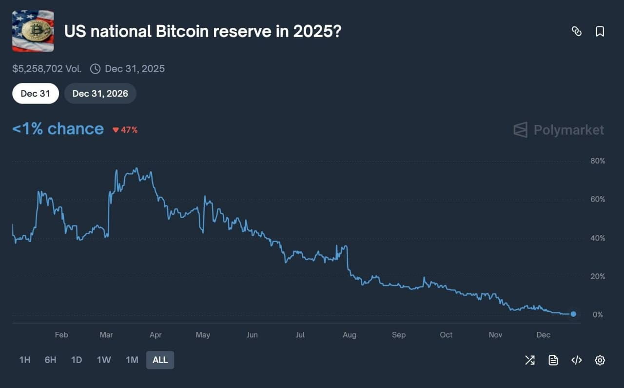 Despite Trump's directive to create a strategic reserve of Bitcoin, the market is reacting to this news with caution. The reason is simple: there is currently no official confirmation of how much BTC is actually held on the balance sheet of the U.S. government as a reserve, rather than as confiscated or seized assets. Without clear data, such statements are not perceived by the market as a full-fledged bullish factor. According to Polymarket rules, without direct confirmation from the government, this information is not counted.