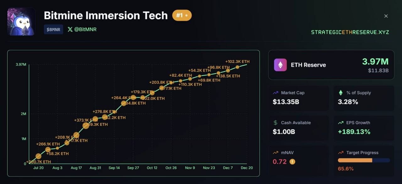 At the same time, signals of institutional interest are appearing in the market. Bitmine has already achieved about 66% of its goal to acquire 5% of the total ETH supply. This is not a mass trend, but an indication that large players continue to cautiously build positions.