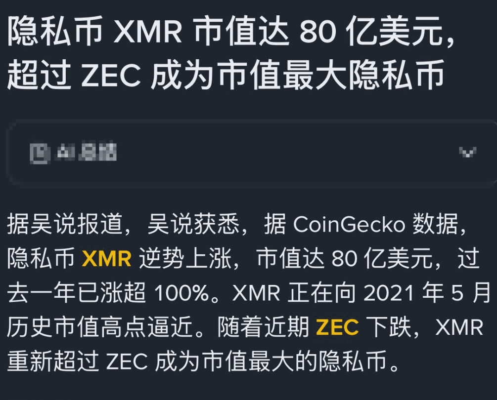 It's not as simple as XMR rising to 8 billion — this is the ultimate vindication of privacy coins. While everyone talks about the increase, the truth is: the market is voting with real money, strangling those 'semi-transparent' pseudo-privacy projects!