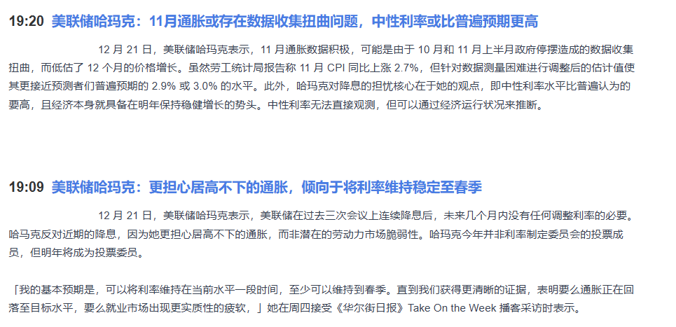 'No rush to act next year': She directly stated her inclination to maintain stable interest rates until at least spring next year. And she will have voting rights next year! This is almost a call to action: 'Those in the market betting on a drastic interest rate cut in the first quarter, you can wake up now.'