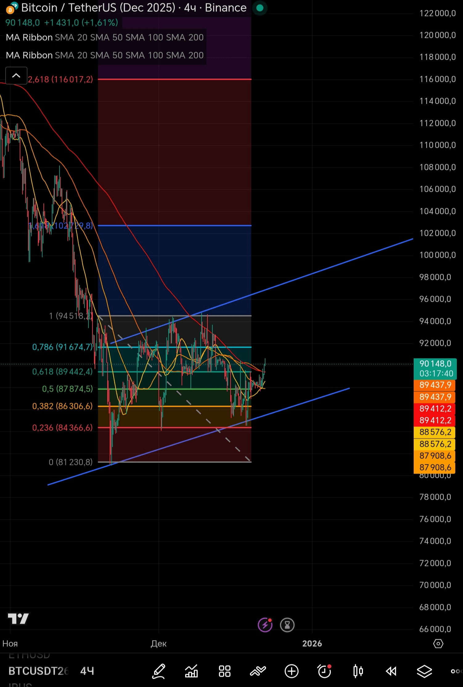 Fibonacci magic: We are finely holding the 0.618 level ($89,442). This is our 'golden ratio.' As long as the price remains above — the trend stays bullish.