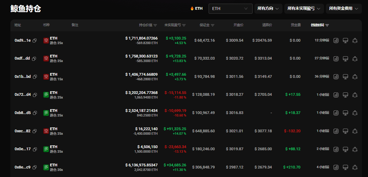 On one hand, a giant whale has quietly withdrawn 3365 ETH (about 10.2 million USD) from exchanges, continuously accumulating 30,000 ETH for half a month, as if laying out a secret plan; on the other hand, the 'bro' big player has reduced their long positions in ETH, and another giant whale has aggressively increased short positions in BTC, ETH, and SOL, with a total position of 243 million USD!