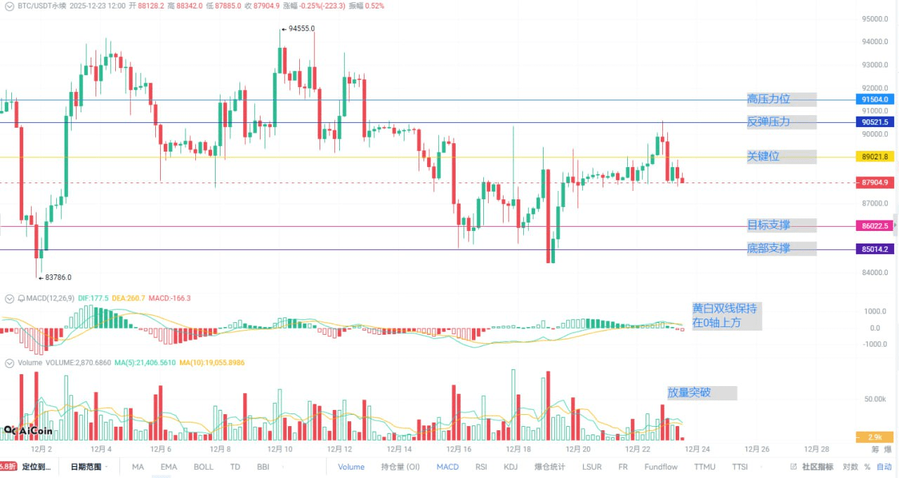 Second, keep a close eye on key positions! If there is a volume breakout above 90500 and it stabilizes without falling back, the short-term sentiment will likely turn bullish; but if it falls below 88600 and can't stabilize, the depth of the pullback may exceed expectations. Before these two signals appear, fluctuation will be the main melody, so don't mess around;
