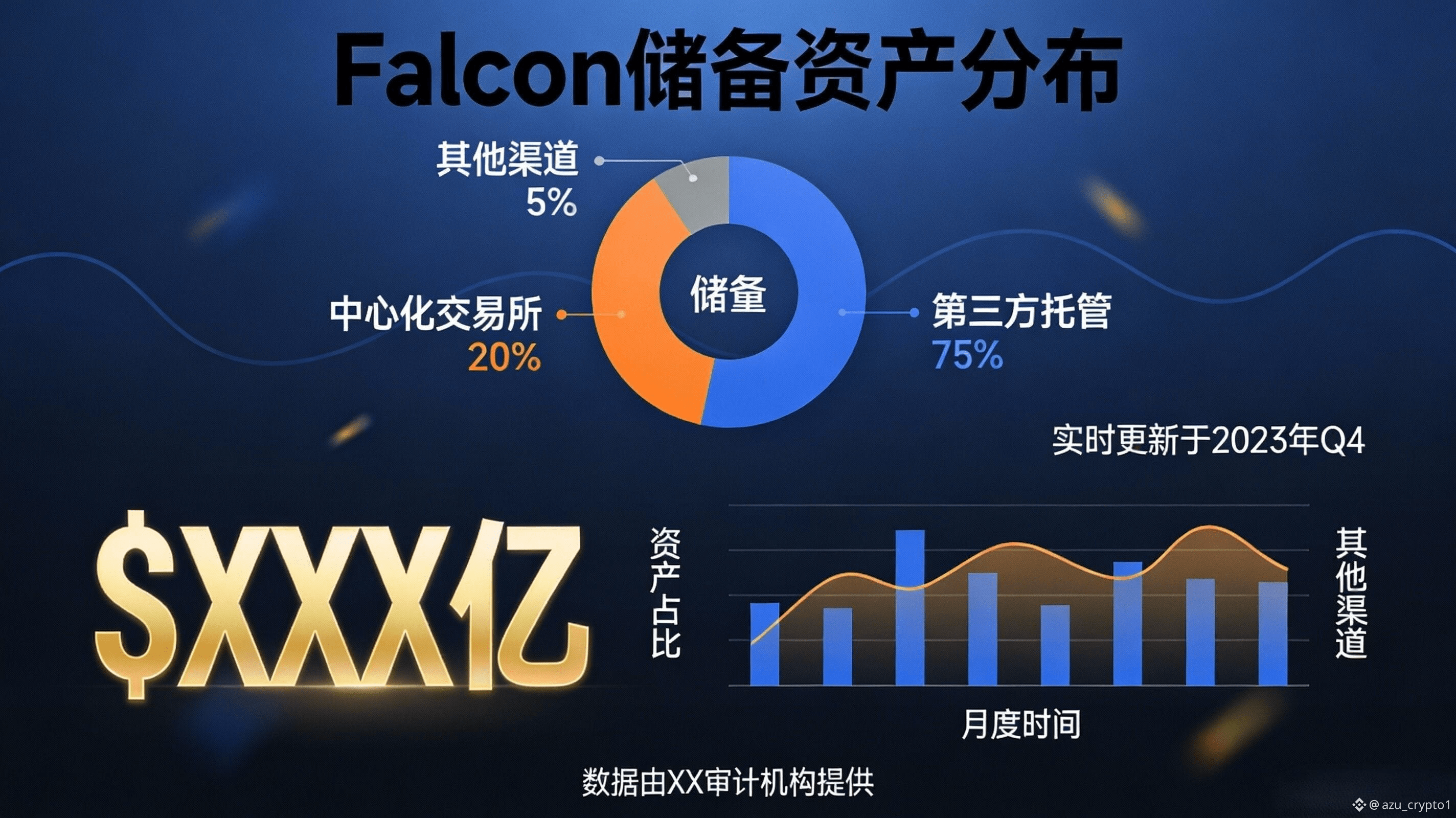 这就带来一个很现实的规则变化:用户风险心智会从“我怕交易所跑路”升级成“我看资产在哪里、为什么在那里”。以前我们讨论安全,容易陷入二选一——要么完全链上、要么完全中心化;而 CeDeFi 更像第三条路:你接受一定程度的中心化执行,但你用托管与披露把风险变成可观察、可约束的过程。Falcon 自己也把“储备分布”当成核心展示项,等于在告诉用户:别只问我“安不安全”,你应该问“结构今天怎么长、和上周比变了什么”。