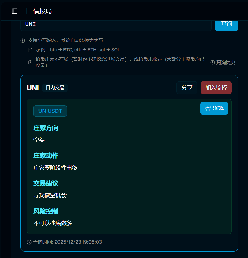 The intelligence bureau + combat room precisely captures the intention of the main force's 'stage offloading and smashing the market', helping you avoid 90% of being trapped while bottom fishing. Shorting during the offloading period is the most profitable!