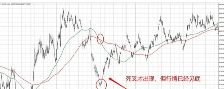 Before the golden cross or death cross appears, the long and short-term moving averages must flatten to create conditions for crossing. As shown in the figure, once two moving averages turn and the short-term moving average is faster than the long-term moving average, it often signals a crossover. If this occurs at the bottom of the market, it is often a very effective golden cross or death cross.