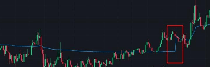 For example, in the figure below, you will find that the VWAP is almost vertical upwards. Such a situation will never occur in a smooth moving average. Here, the VWAP indicates that the market is clearly influenced by large orders, issuing an early warning signal.