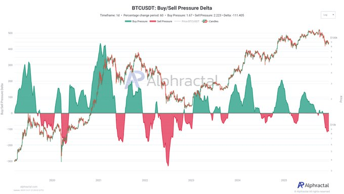 · Data from CryptoQuant and Alphractal reveal a decline in active addresses, a contraction in buy order volume on Binance, and a slowdown in liquidity, reflecting market patterns similar to the end of 2021.