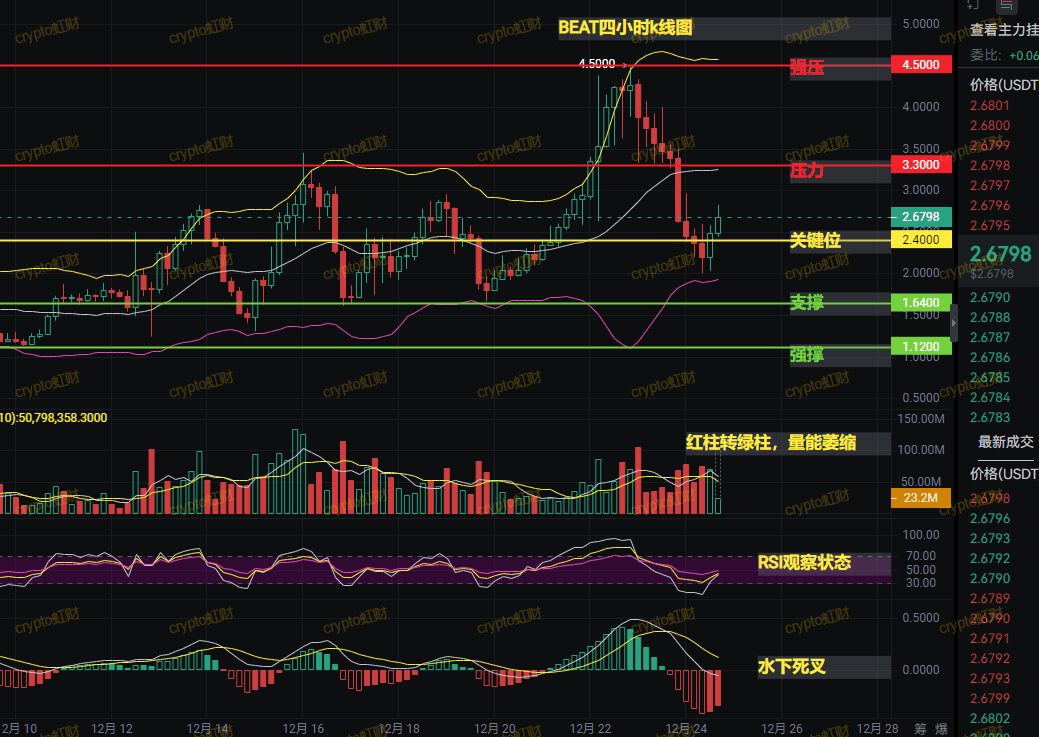 In the financial market, when it should rise but doesn't, be careful. When a technical 'death cross' signal appears, it often means a trend is nearing its end. For BEAT, my personal core viewpoint is: this is definitely not the time to mindlessly chase prices, but rather to advance and retreat, prioritizing profit locking. The real second entry opportunity is likely to occur after it fully retraces to the 1.64-1.12 range and a clear stop-loss signal appears.