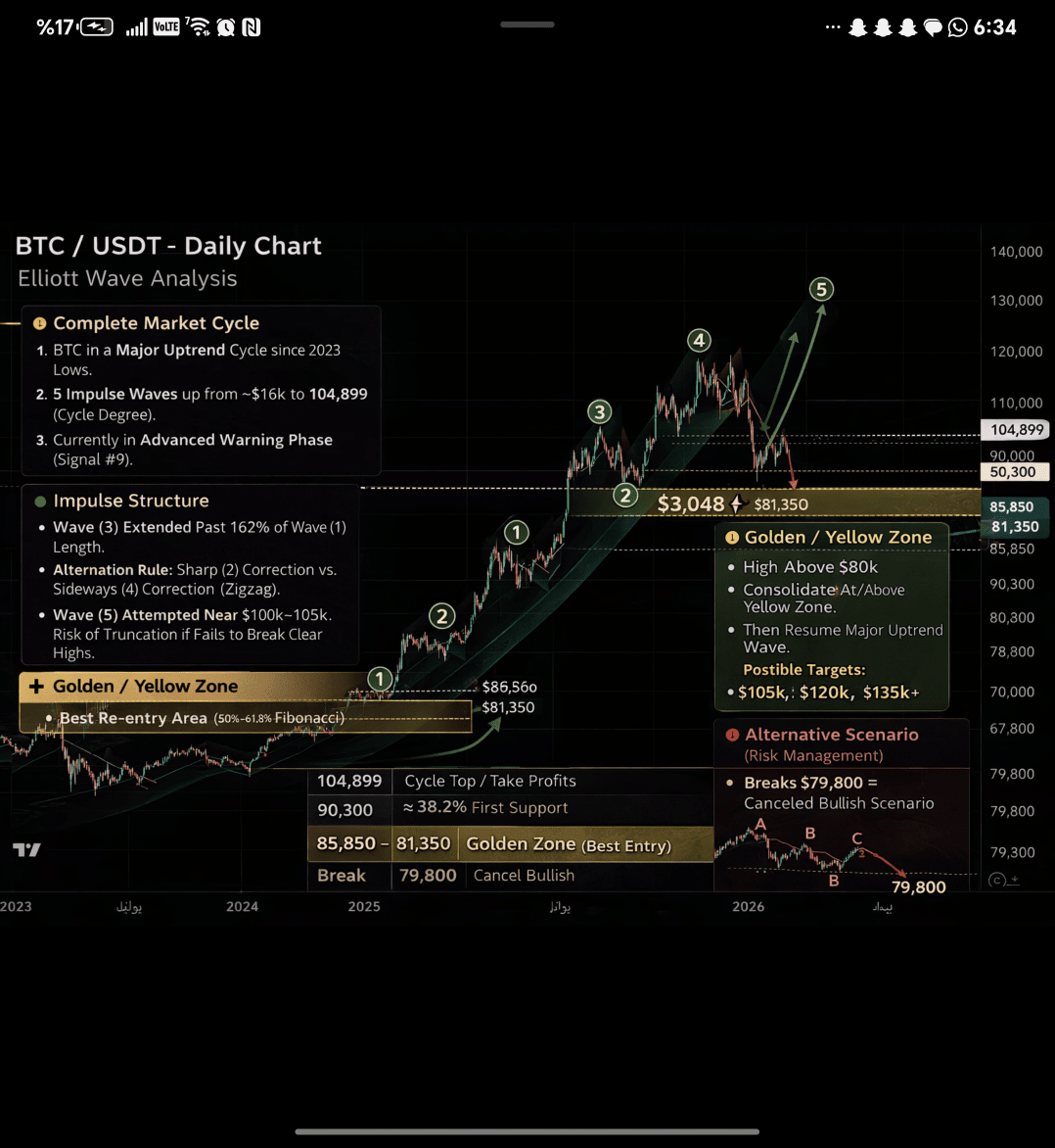 Breaking 79,800$ with a clear daily close → Temporarily fails the bullish scenario → Correction turns into a deeper A-B-C model → Targeting lower areas to rebuild a new cycle