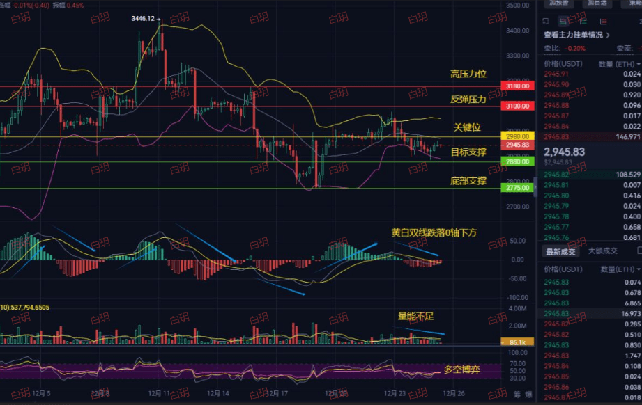 Short term: The market may continue to "grind". The Federal Reserve is not easing in the short term, and the liquidity is not loose, thus the conditions for ETH to surge violently are insufficient. It is highly likely to continue oscillating in the range of 2945 - 3100, and it may even test the strong support at 2775 again. Overall, it still leans towards weak oscillation.