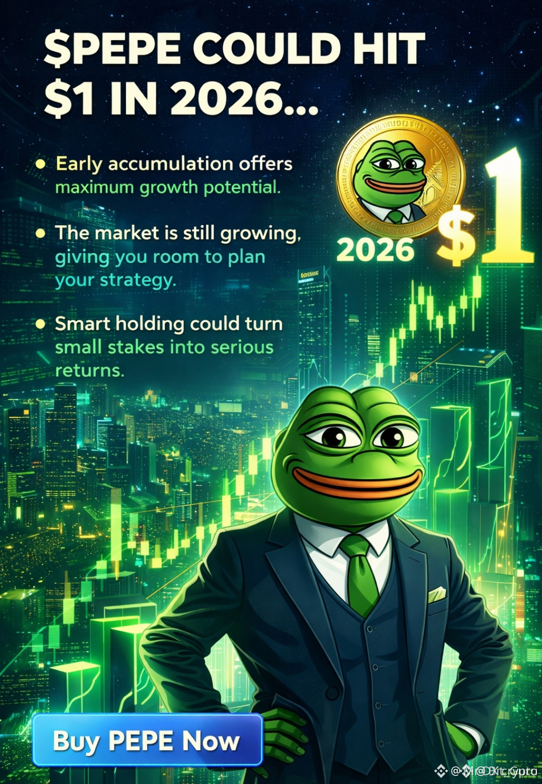 $PEPE has evolved far beyond a short-lived meme pump. What started as pure internet culture has gradually turned into a liquidity-driven asset with one of the most active communities in crypto. When people talk about the possibility of $PEPE reaching extreme price levels by 2026, they are not only talking about price — they are talking about timing, market cycles, and human behavior.