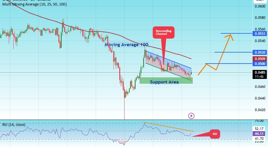 Hay una zona de soporte principal en verde en 0.0472, y el precio ha subido desde este nivel varias veces. Se espera otro rebote.