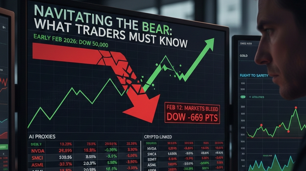 A principios de febrero de 2026 se sintió eufórico. El Dow cruzó los 50,000 por primera vez, cerrando en récords en días consecutivos. El S&P 500 se situó cerca de 7,000 después de un enero fuerte, y el Nasdaq se benefició del impulso de la IA. Las ganancias comenzaron sólidamente, los datos de empleo se mantuvieron firmes, la inflación enfrió y prevaleció el discurso de un aterrizaje suave. Muchos comerciantes, yo incluido, mantuvieron posiciones largas en futuros tecnológicos y persiguieron movimientos posteriores a las ganancias, esperando que las caídas fueran compradas agresivamente. El cambio llegó rápido. A mitad de semana, surgieron temores de disrupción de la IA. Surgieron preguntas sobre si el gasto masivo en infraestructura de IA erosionaría los márgenes en software, redes y sectores adyacentes.