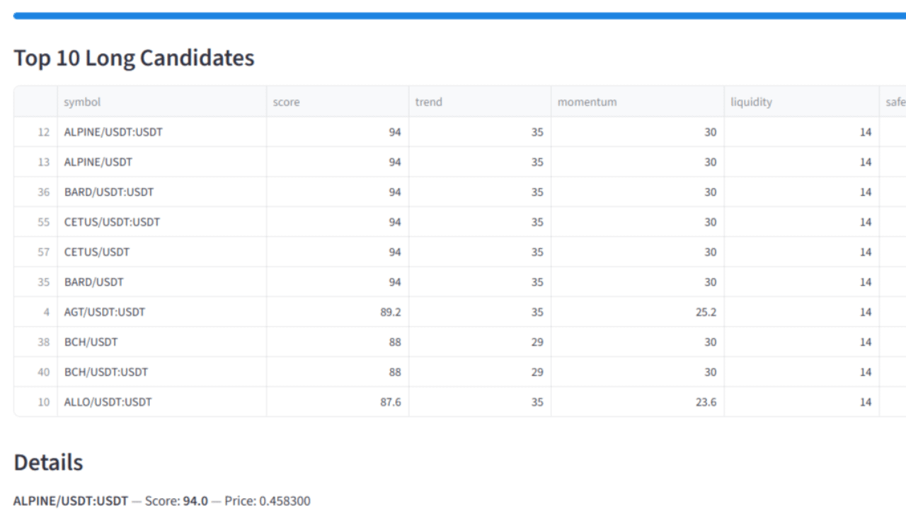 CETUSUSDTPerp0.02952-0.84%(El Mover DeFi): También alcanzando ese notable puntaje de 94.0. Muestra una fuerza increíble con un puntaje de tendencia de 35. CETUS está trazando un camino muy alcista en este momento—definitivamente uno para mantener en tu monitor secundario.