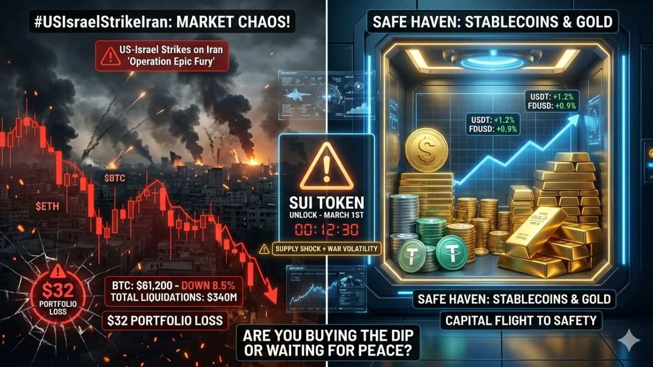 $BTC $ETH $SUI #USIsraelStrikeIran #CryptoCrash2026 #MarketUpdate #StaySafe #Write2Earn