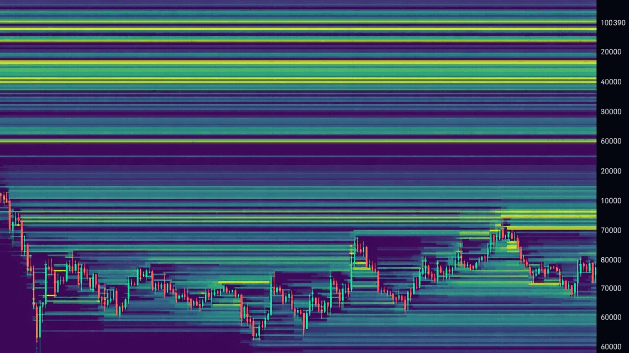 BTC todavía tiene un grupo de liquidez bastante notable alrededor de la zona de 62.000–63.000 USD, y esa es el área del mercado que podría querer barrer si la tendencia débil continúa prolongándose.