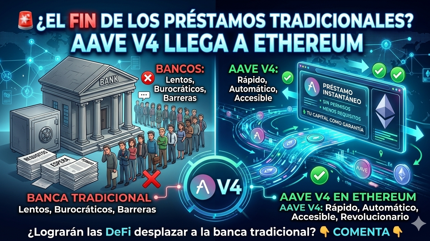 No todo son números rojos en el mercado hoy. Mientras muchos están asustados por las pérdidas del 46% de Bitcoin, el gigante de las Finanzas Descentralizadas (DeFi), Aave, acaba de lanzar su esperada V4 en $ETH Ethereum. Y no viene sola, trae un sistema de créditos totalmente revolucionario que podría cambiar las reglas del juego para siempre.