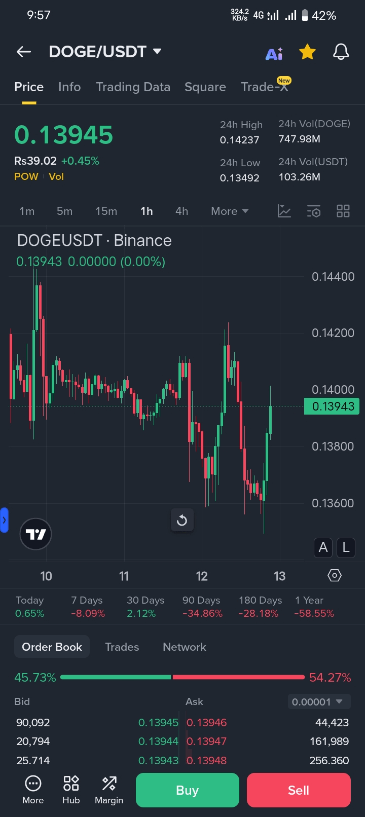 $DOGE se mantiene cerca del soporte clave alrededor de la zona de $0.135–0.139, con compradores defendiendo el precio y la estructura permaneciendo positiva mientras se mantenga $0.135.