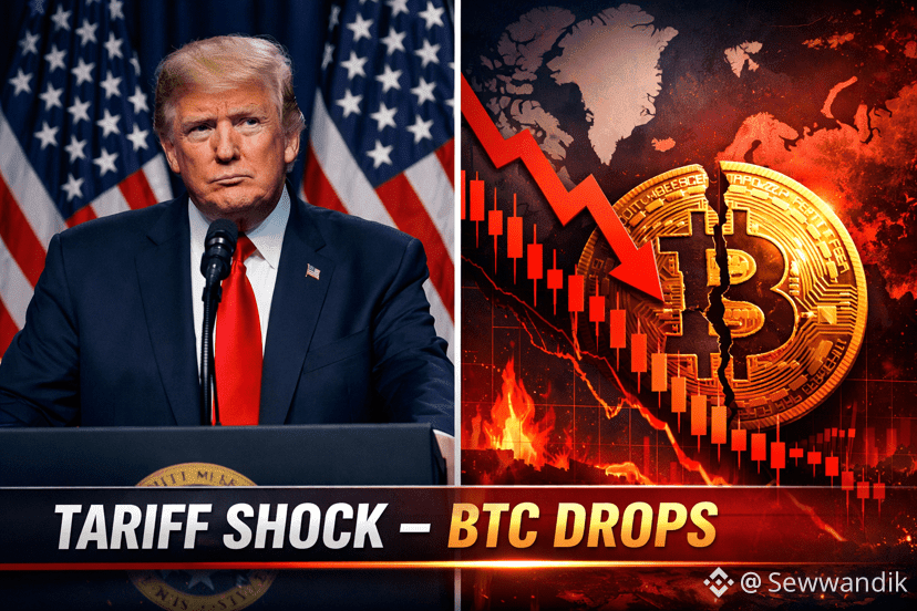 The market just took a massive hit. $BTC slammed down to **$91,900** moments after President Trump announced sweeping new tariffs on 8 European nations (including Germany, France, and the UK).