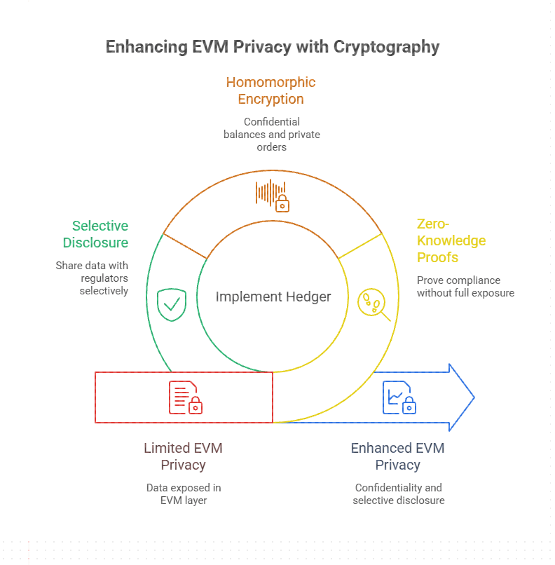 Hedger extiende la privacidad directamente en la capa EVM utilizando pruebas de conocimiento cero y encriptación homomórfica. Eso suena abstracto hasta que te das cuenta de lo que permite: