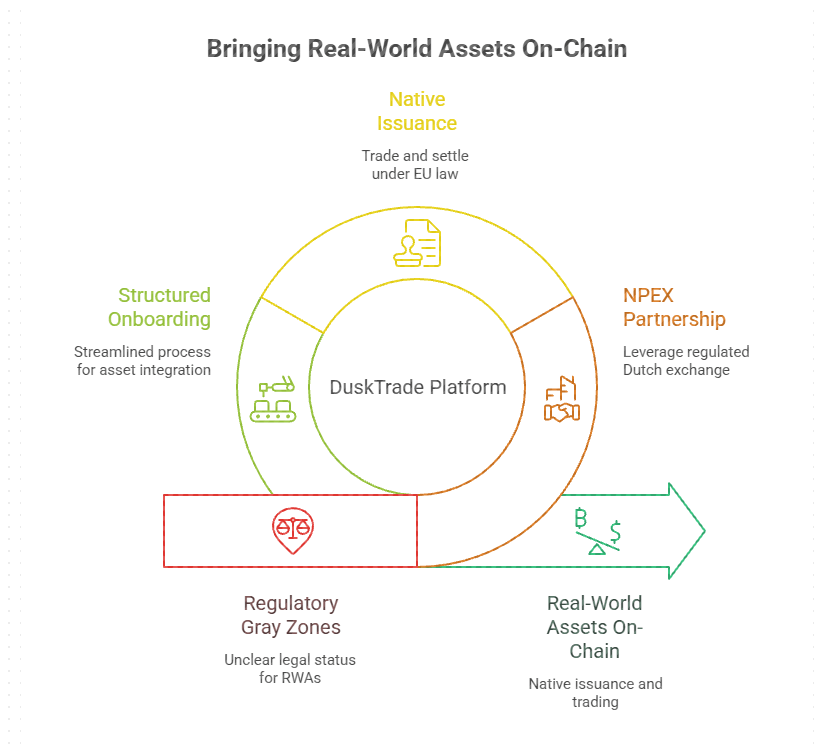 DuskTrade no es una idea de libro blanco. Es un producto que se está construyendo con NPEX, una bolsa regulada holandesa que posee licencias MTF, Broker y ECSP.