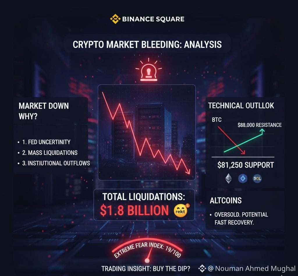 The Liquidation Cascade: Over $1.8 Billion in long positions were liquidated in the last 24 hours alone. This "domino effect" has pushed prices down much faster than organic selling would.