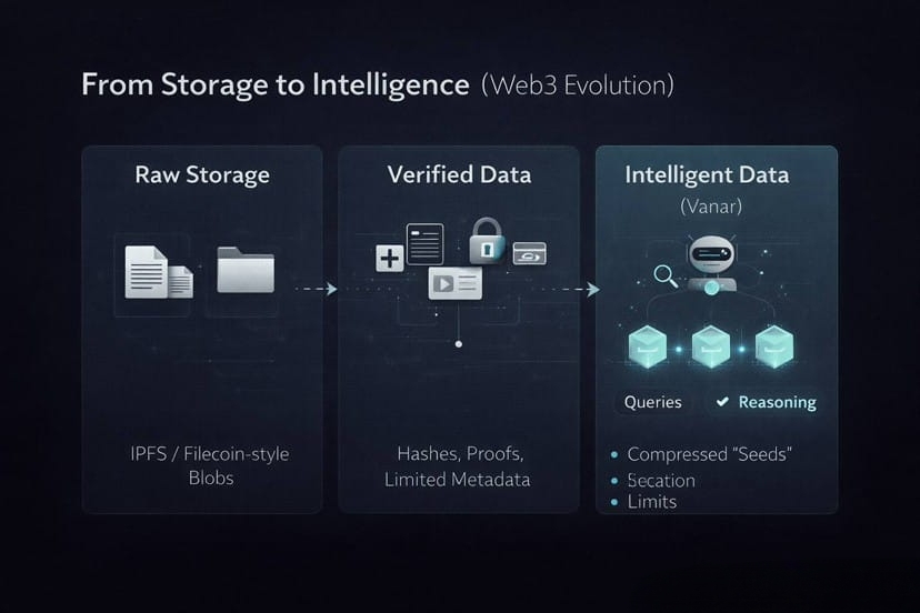 Esta es la razón por la que Vanar no encaja perfectamente en la categoría de redes de almacenamiento. No está tratando de competir en disponibilidad o redundancia. Está intentando construir una capa de datos inteligente.