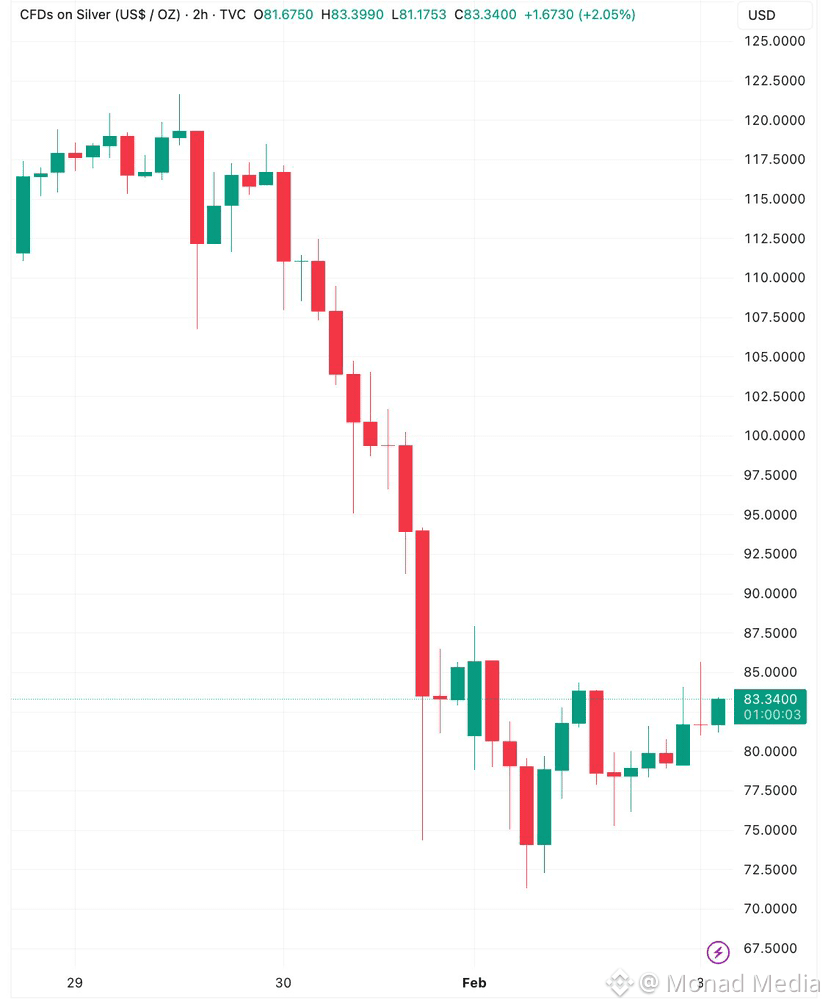 LA PLATA ha subido más del 10%, recuperando $83/oz. Dentro de 24 horas, la plata subió un 20% desde su mínimo, apuntando a un fuerte aumento en el impulso a corto plazo.