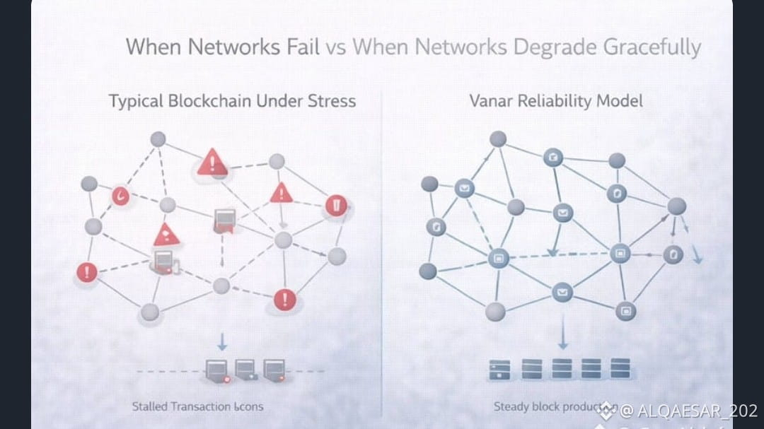 El concepto más inusual que Vanar tiene en este momento no es la IA o el metaverso o los precios bajos. Es más como un subordinado y menos discutido: la fiabilidad del protocolo integrado. En términos simples, Vanar está intentando trabajar con la cadena como infraestructura que continúa operando a pesar del desorden de la red, la falla de nodos o incluso los intentos de actores malintencionados de hacerse pasar por parte de la red.