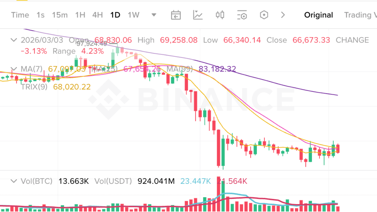 Short-term risk: Geopolitical tensions + oil volatility → tighter liquidity, elevated funding rates, forced liquidations → BTC could slide further (possible retest of $60,000–$63,000 support zone if escalation continues).