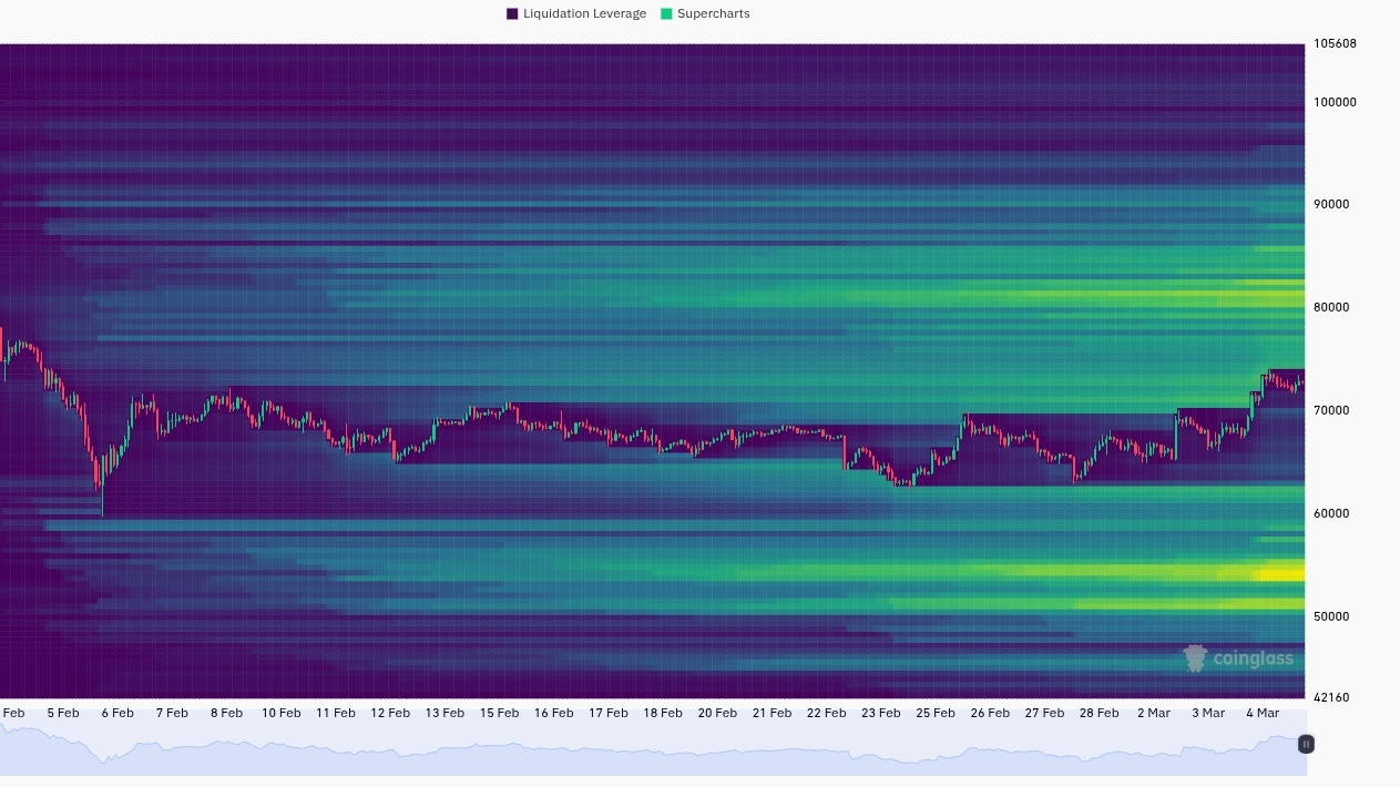 At the same time the liquidity below is very obvious. The $65K region holds a large cluster of stops and resting bids, which tends to attract price before the market commits to the next real trend.