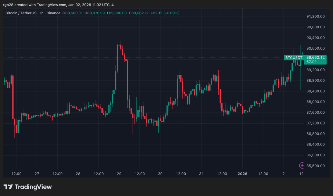 Au moment de la rédaction de ce rapport, le Bitcoin se négocie à 90,240 dollars, en hausse de 1.54 % sur une base quotidienne.