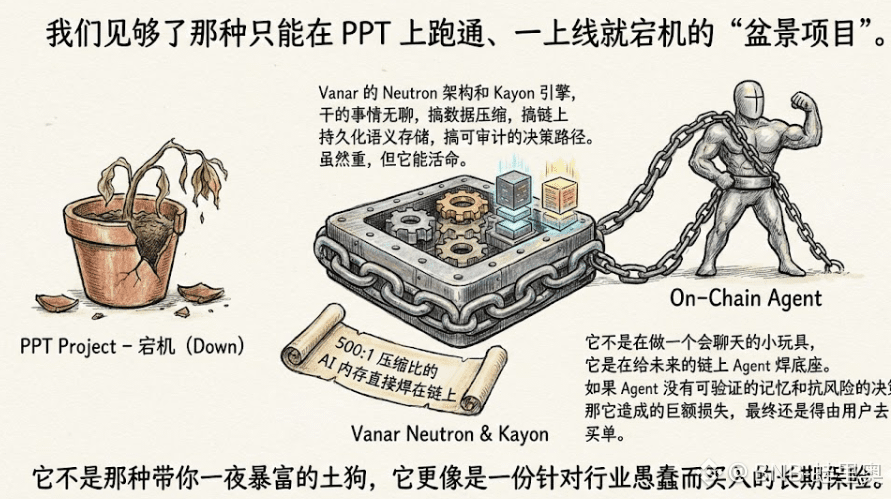$VANRY 这种把 500:1 压缩比的 AI 内存直接焊在链上的搞法,虽然重,但它能活命。