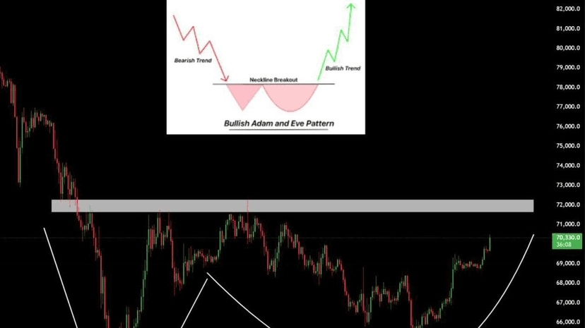 Pemegang jangka panjang: zona akumulasi sekarang jelas terdefinisi — formasi Adam & Eve menandakan bullish struktural.