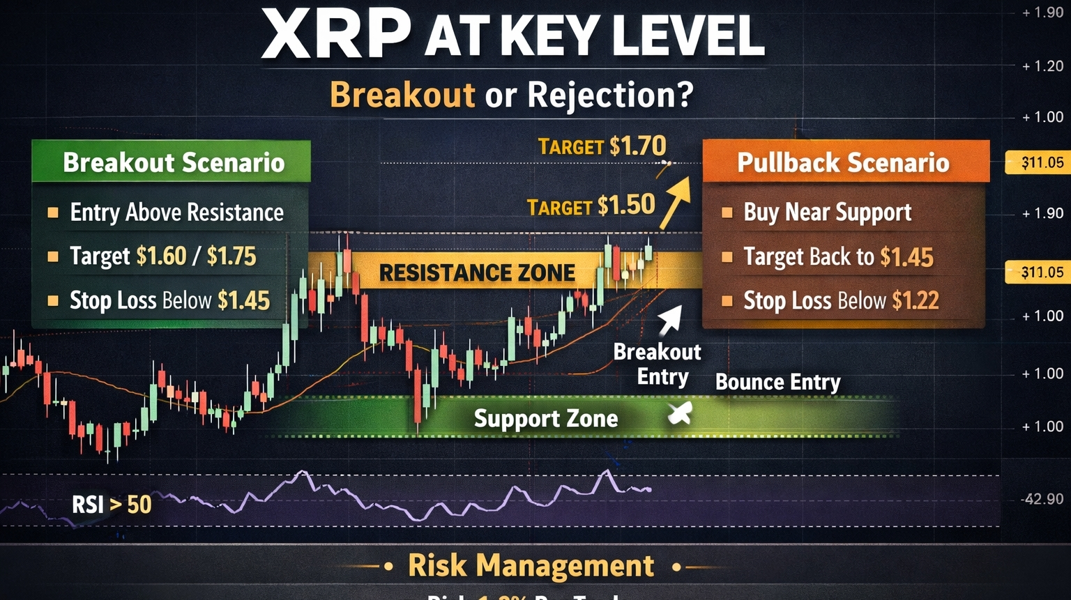Pasar saat ini bergerak dengan momentum campuran, dan XRP mendekati area keputusan teknis di timeframe yang lebih tinggi.
