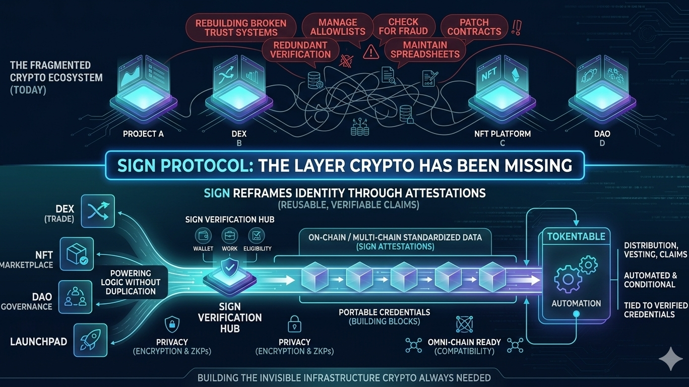 SIGN tidak mengejar hype. Ini membangun infrastruktur tak terlihat yang selalu dibutuhkan oleh crypto. Pertanyaannya adalah: apakah kita siap untuk berhenti membangun kembali dan mulai berbagi?