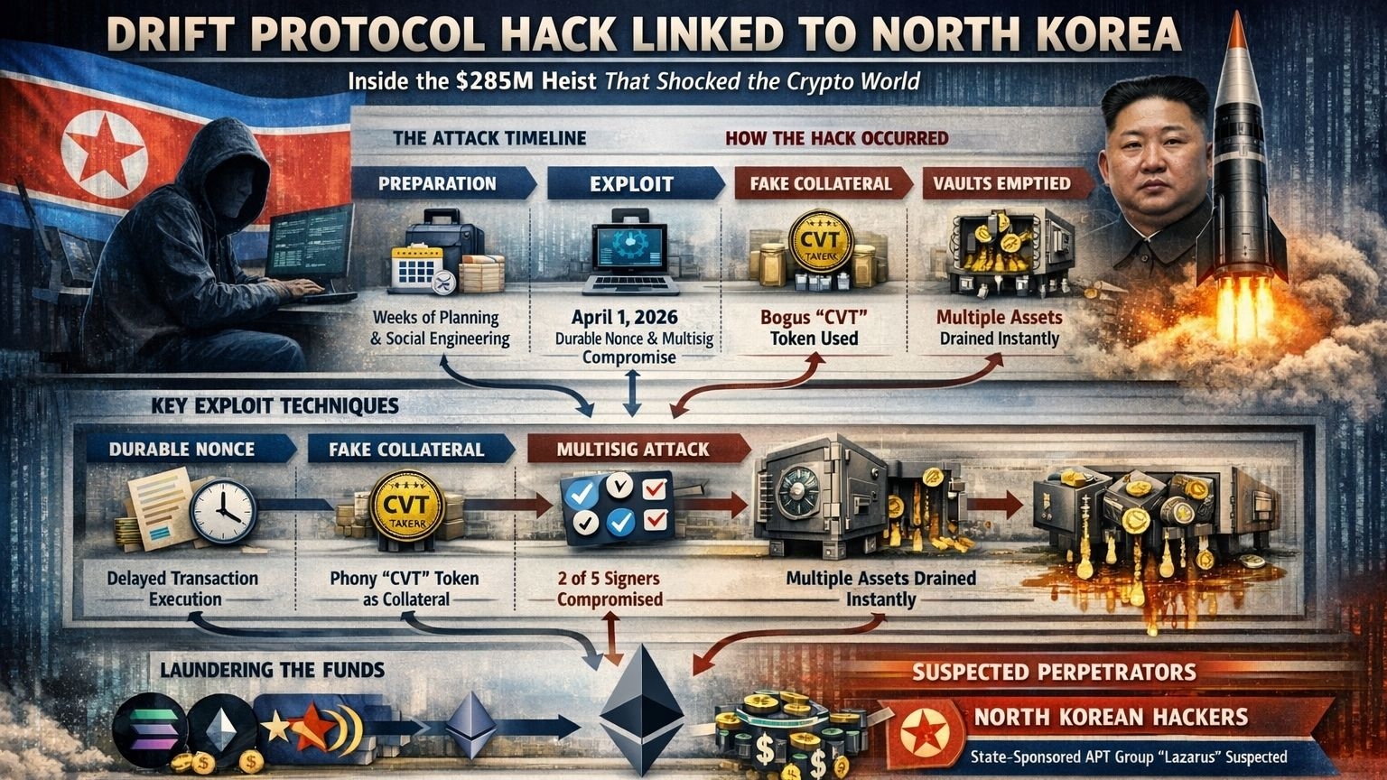 The attack on Drift Protocol on April 1, 2026, did not resemble the standard DeFi exploit in which a coding error is discovered, a vulnerable contract is paused, and the industry begins the familiar cycle of patching, blame, and retrospective wisdom. What emerged instead was a more unsettling picture in which a legitimate Solana transaction feature, compromised signer approvals, and a fast administrative takeover appear to have been woven together into a carefully staged operation that investigators now believe was likely carried out by North Korean actors. Drift said the attacker gained unauthorized access through a “novel attack involving durable nonces,” rapidly seized Security Council administrative powers, and triggered losses that outside investigators have placed at roughly $285 million to $286 million.
